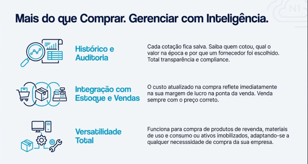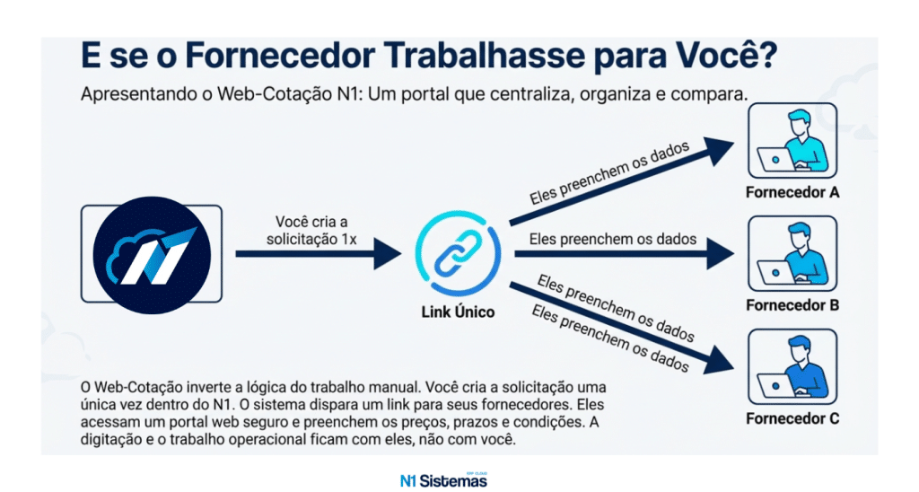 - O Poder da Prova: O fornecedor preenche os preços e prazos diretamente no portal web do N1. Eles fazem a digitação, não você.