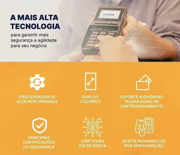 - Tecnologia de Ponta: Utiliza um PIN Pad criptografado (Gertec PPC930) com aceitação de pagamentos por aproximação e garantia de segurança nas transações.