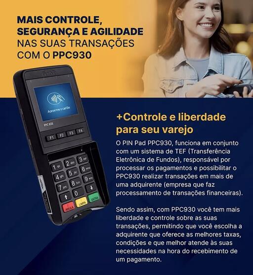 O PinPad Gertec PPC930 é utilizado para Transferências Eletrônicas de Fundos (TEF).
