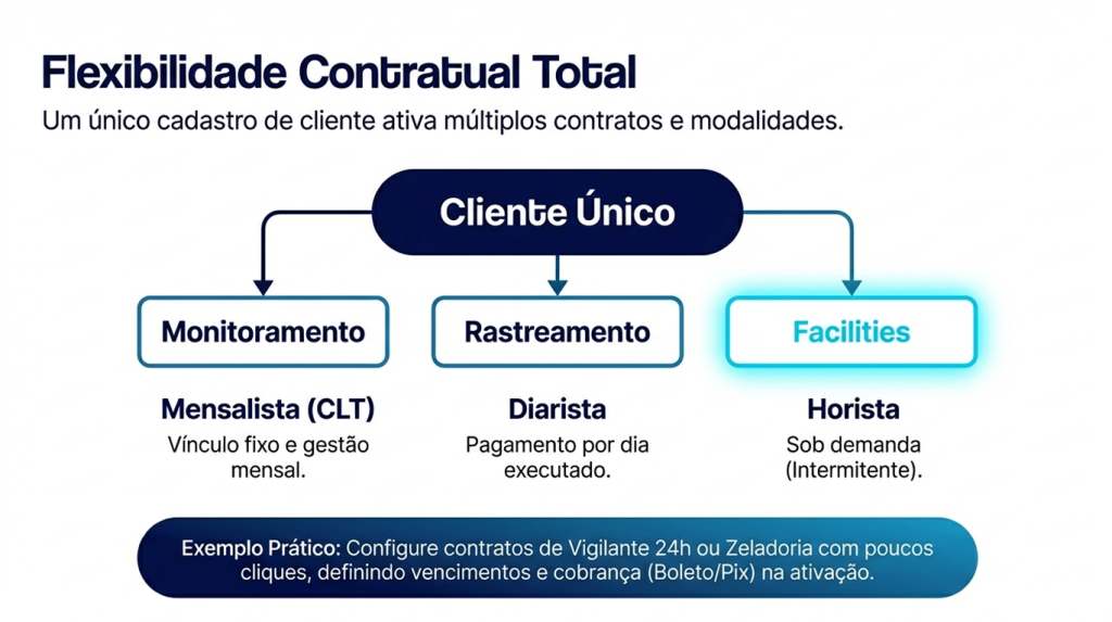 Empresas de facilities trabalham com múltiplos contratos simultâneos.