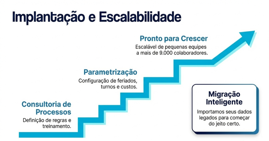 Conforme destacado na seção de implantação, a plataforma é preparada para crescimento estruturado.