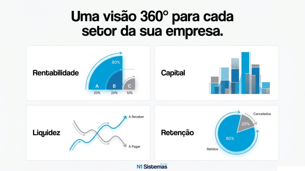 Com mais de 20 dashboards interativos, o N1 Analytics elimina os silos de informação entre o financeiro, operacional e comercial. Você deixa de ser um “apagador de incêndios” reativo para se tornar um estrategista que antecipa cenários e garante a máxima rentabilidade do negócio.