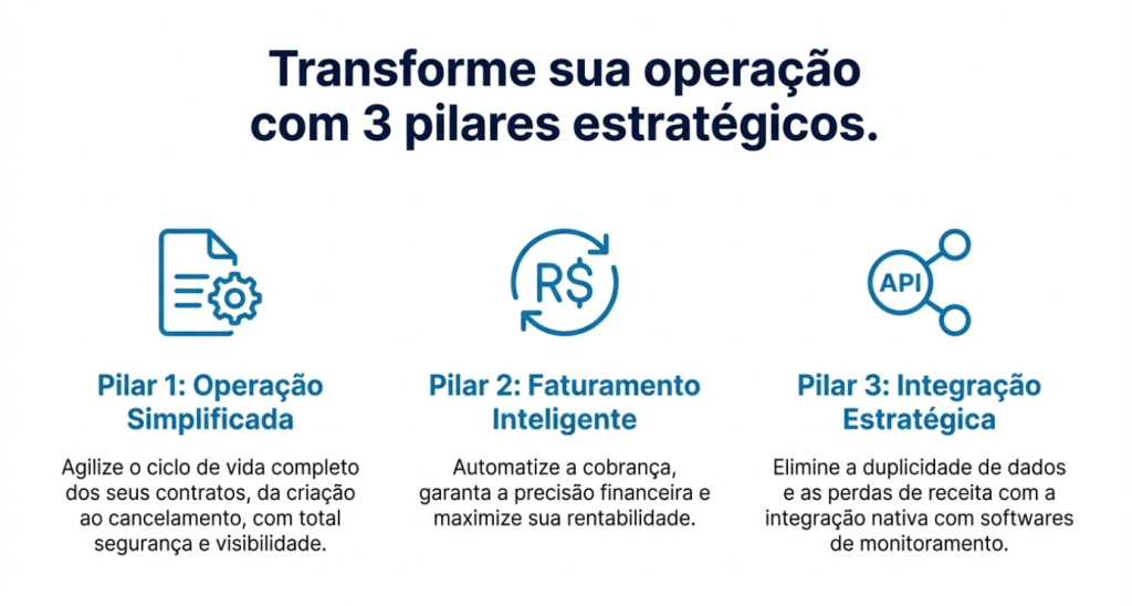 “Sua empresa de segurança eletrônica ainda sofre com contratos esquecidos em gavetas ou reajustes que nunca acontecem?. Gerenciar centenas de mensalidades de monitoramento e portaria remota de forma manual é um convite ao prejuízo invisível e à perda de liquidez.